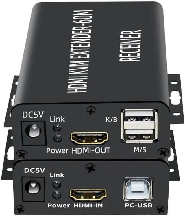 • HDMI-Compatible KVM Extender 60M Over Cat5/6 Ethernet Cable 1080P USB Audio Video Converter For PC TV Monitor