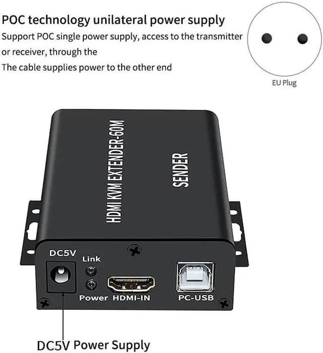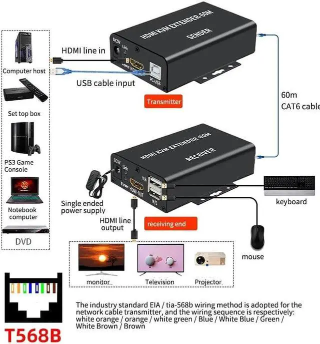 • HDMI-Compatible KVM Extender 60M Over Cat5/6 Ethernet Cable 1080P USB Audio Video Converter For PC TV Monitor