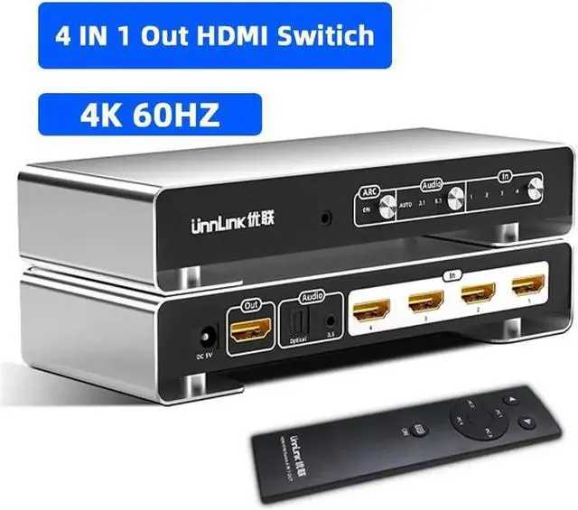 • Switch 4 In 1 4K 60 Hz Switcher Out with 5.1 4x1 Optical 3.5mm Audio Converter for PS5 Xbox Laptop Amplifier TV
