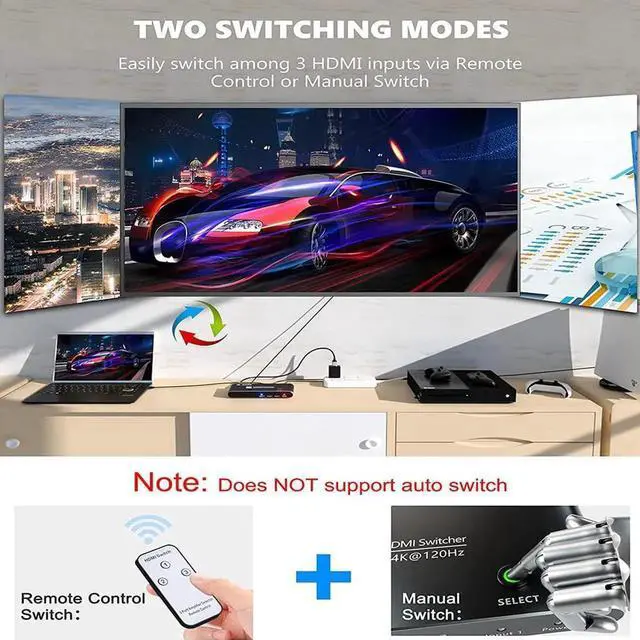 feature: IR Remote, HDMI-compatible 2.1 Switch, 8K@60Hz 4K@120Hz