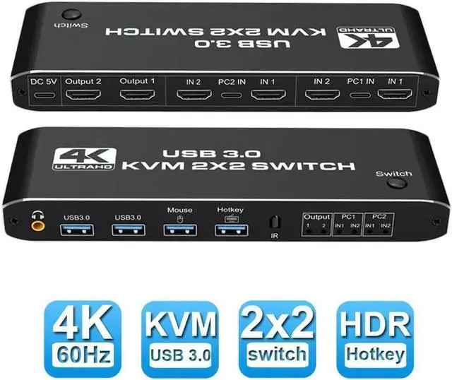 [HDMI KVM USB switch dual monitor] KVM Switch allows control 2 computer with one set of controls (keyboard and mouse) and 2 display screen. Realizes 2 in and 2 out free selection synchronous switching. You can centrally control and manage hosts laptop or game console without having to move from one workstation to another.