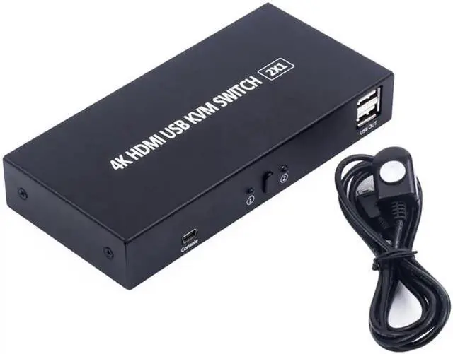 • 2 Port KVM Switch Box HDMI-compatible Two In One Out Keyboard Mouse Display Printer Sharing Device With Wire Control Switcher