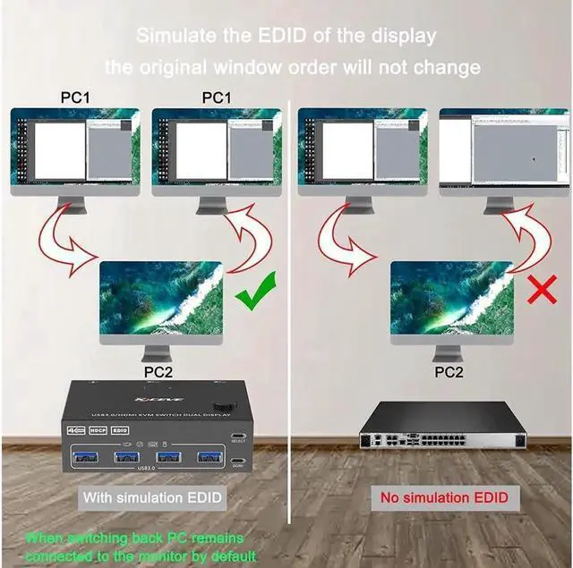 [With EDID Emulator Function] with EDID emulators in each input port, keep computers always having correct display information when switch back. compatible with a variety of computer systems, such as Windows, MacOS, Linux, Chrome OS.