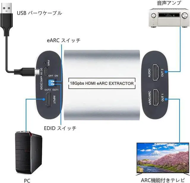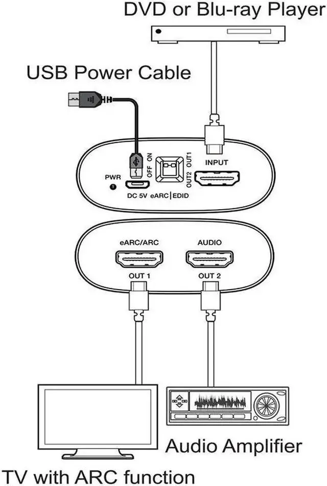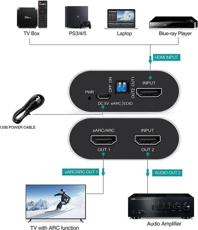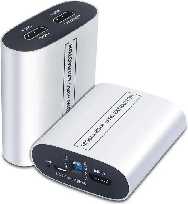 • MB08 HDMI-EARC KVM 1input(HDMI)-2output(EARC/ARCAudio) adapter extractor converter 18Gbps HDMI EARC audio extractor converter
