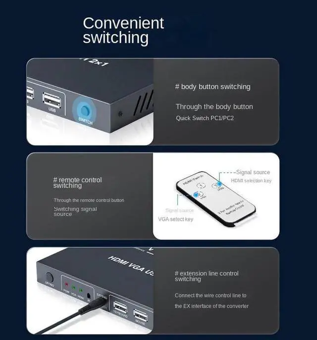 switch 2-port hdmi+vga to HDMI+vga mixed two-in-one out computer HD shared mouse button