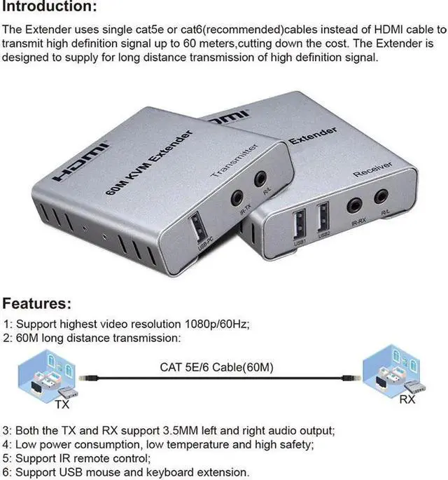 Model Number: 60m HDMI Extender support USB Keyboard Mouse