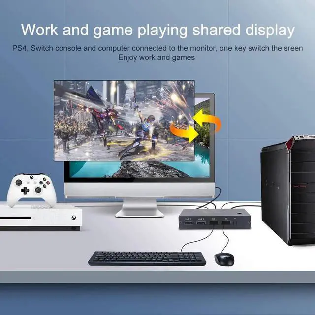 • KVM Switch 2 Ports, USB HDMI Switch 2 Computer Keyboard Mouse Switch Box Support 4K@60Hz for Laptop, PC Supports Hotkey