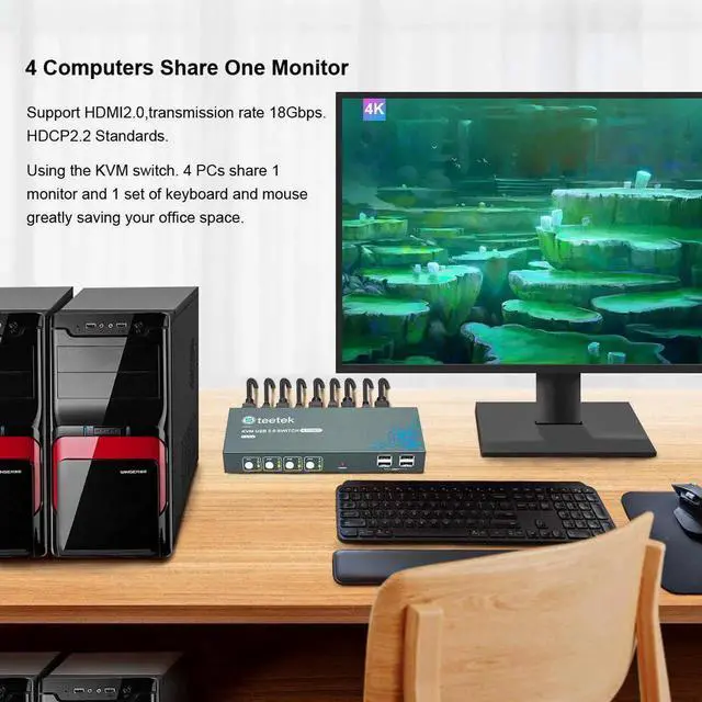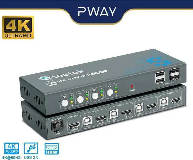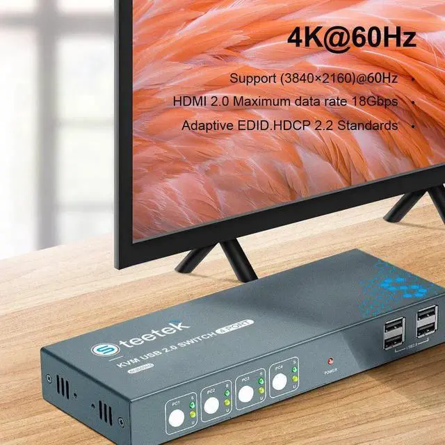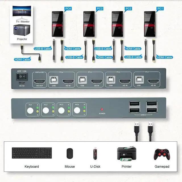 • KVM Switch HDMI And USB Switch 4 In 1 Out Support Resolution 4K@60Hz HDMI2.0 USB2.0 Keyboard And Mouse Printer Switch