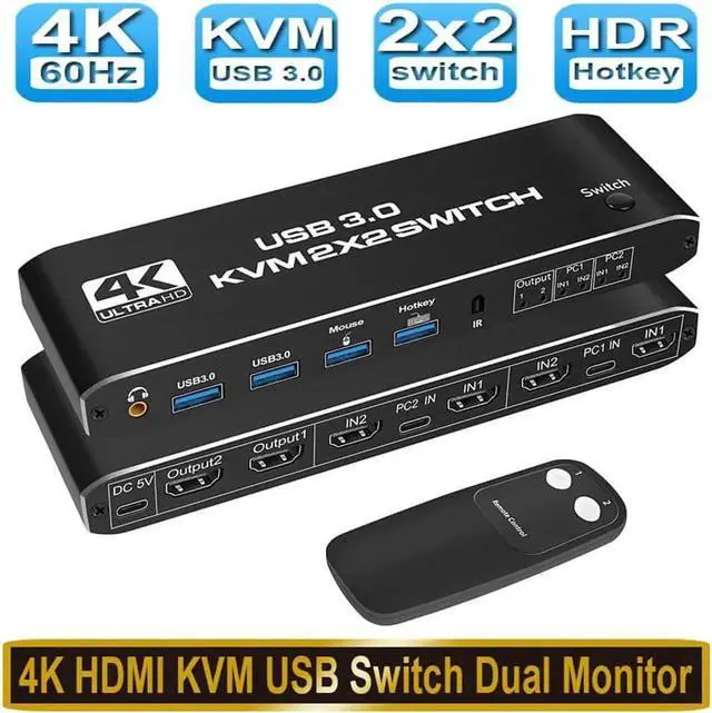 [HDMI KVM USB switch dual monitor] This KVM Switch allows control 2 computer with one set of controls (keyboard and mouse) and two display screen. Realizes 2 in and 2 out free selection synchronous switching. You can centrally control and manage hosts laptop or game console without having to move from one workstation to another.