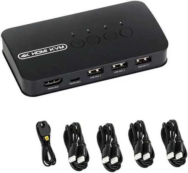 • 4 Ports HDMI-compatible KVM Switch with Extender 1080P Share 4xUSB Disk Monitor Printer Keyboard Mouse for 4 computers