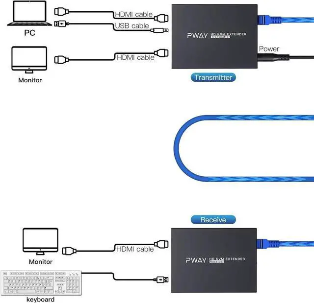 • KVM USB Extender 492ft/150m Transmission over Single Cat5e/6/7 HD 1080P Support TCP/IP Loop out Function to monitor