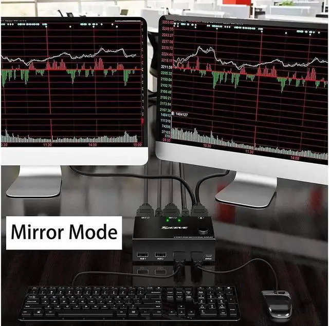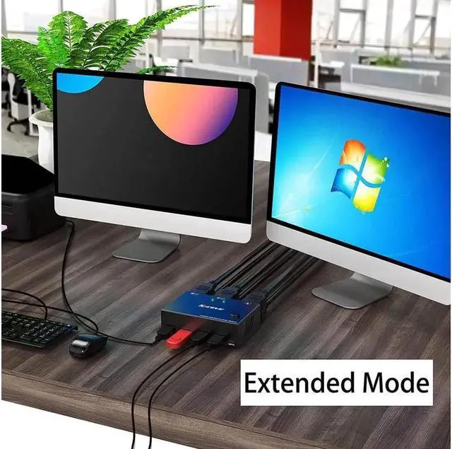 Function: HD Multimedia Interface KVM dual monitor switch can control up to 2 computers or laptops, 1 set of independent USB keyboard, mouse and monitor or 2 sets of expansion or duplication of monitors with dual head input.