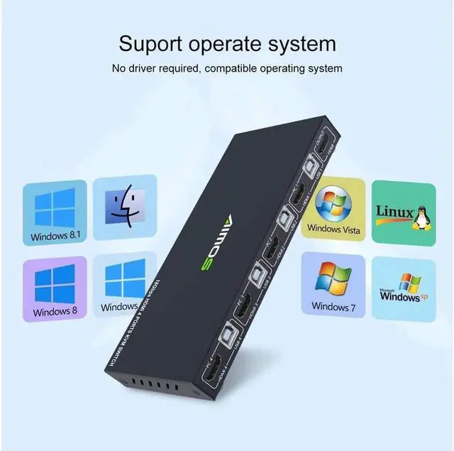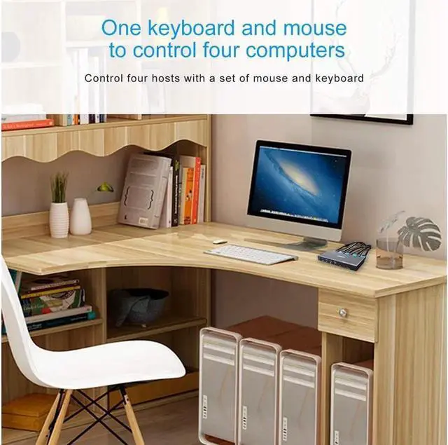 [USB 2.0 HUB Port and Hot key switch] support wireless keyboard and mouse. Supports other usb device such as USB drive/Scanner/3D Printer/Monitor Camera. Support physical button and keyboard hot key switching way. (hotkey: Scroll Lock, Scroll Lock, 1/2/3/4) or (Ctrl, Ctrl, 1/2/3/4).