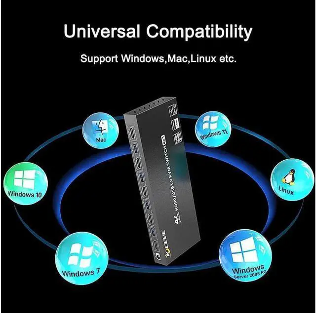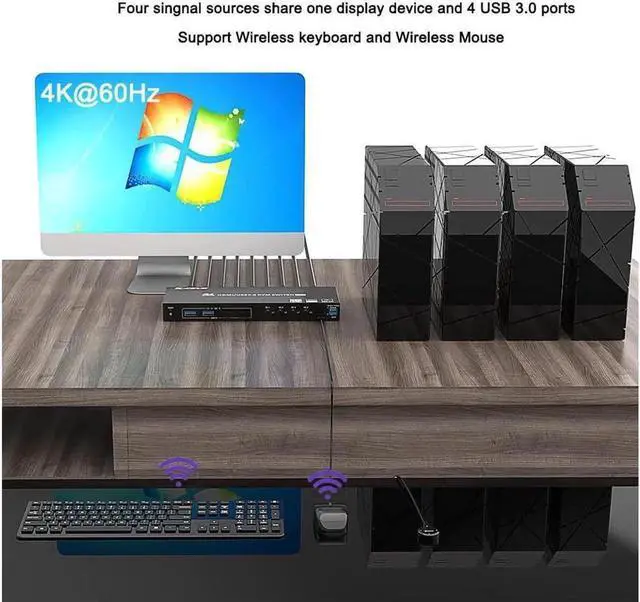 [USB 3.0 HDMI KVM Switch 4 in 1 out] This KVM switch allows to control 4 computers with only one set of monitor mouse and keyboard. Making easily switch between 4 computers on 1 monitor and share 4 USB 3.0 devices.