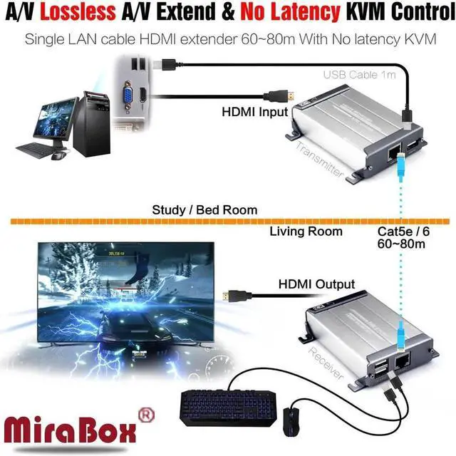 kvm hdmi extender: Support USB Device 1080P 60m/60meters Lossless No Time Delay