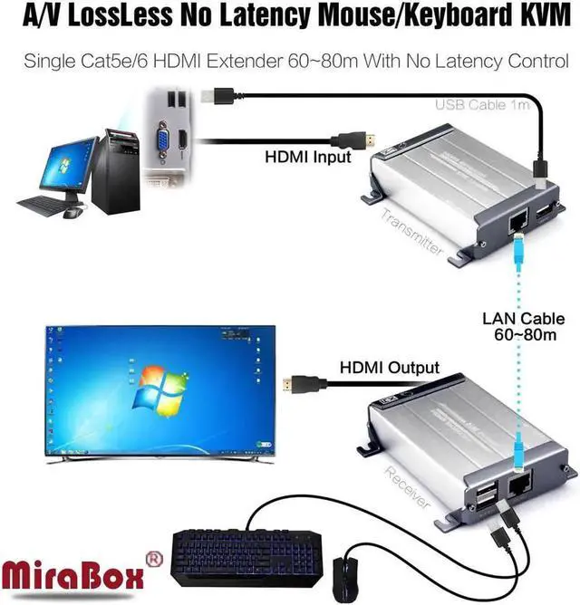 USB Transmission Distance: 60-80m KVM HDMI Extender