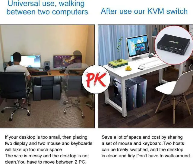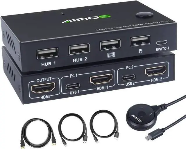 • KVM Switch, 2 In 1 Out Switch Share Monitor Mouse Keyboard HDMI Switcher 4K to 30Hz for Laptop, PC, PS4, Xbox,