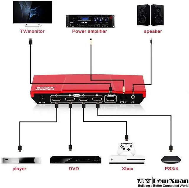 • switcher 4 in 1 out 4K 60HZ dolby with 3.5mm SPDIF Audio Extractor for Nintend PS3 PS4 XBOX HDMI 2.0 Switch automatic 4X1
