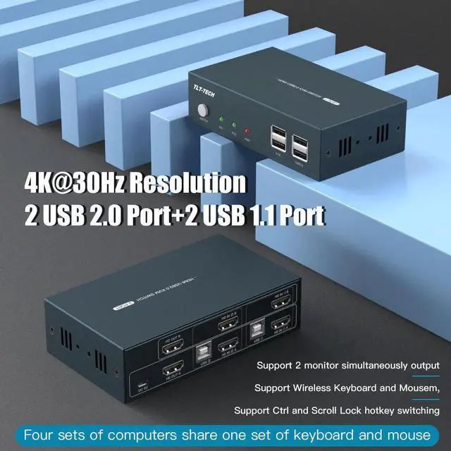 • Monitor Kvm Switch 2 Output HDMI-compatible 2 Input Display Support 4K USB2.0 Switch Kvm For Laptop