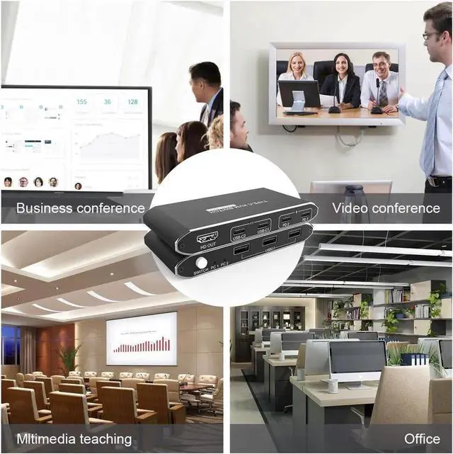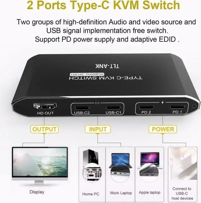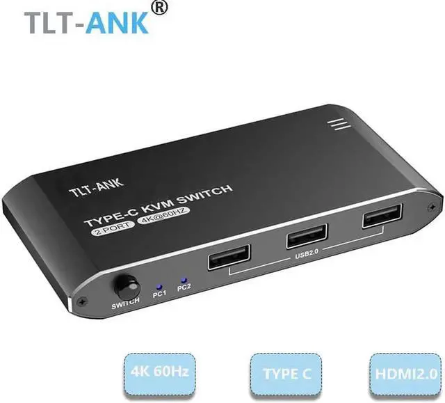 • 2 Port 4K 60Hz Type C KVM Switch USB C KVM Switch USB2.0 Switch With HDMI Output Including Type C cables