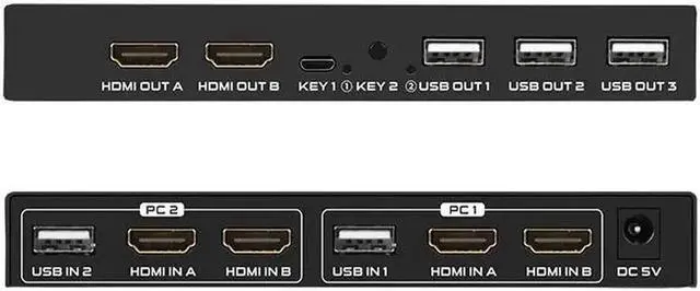 Switch 2In 2 Out Dual Screen Expansion two computers share two monitors share USB keyboard mouse hdmi-compatible switcher
