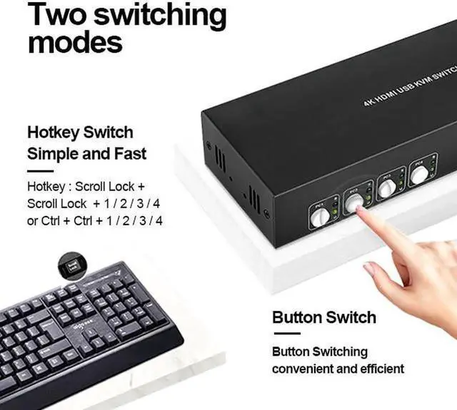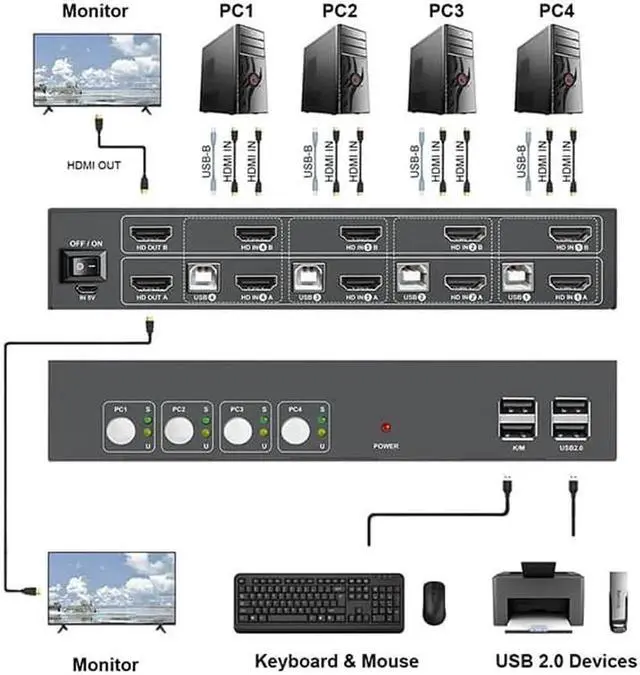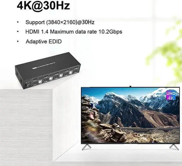 • Monitor Hdmi KVM Switch 4 Ports Hot Key Arc Extractor 4K 30hz Kvm Switches 4in Dual Out HDMI 1.4 Automatic EDID Adaptation