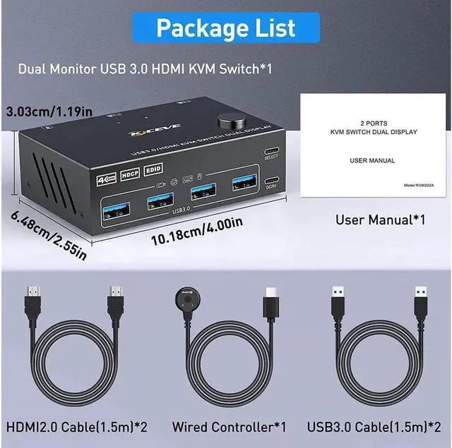 [Support up to 4K@60Hz ] USB 3.0 dual monitor KVM switch supports resolution up to 4K@60Hz, 2K@120Hz.