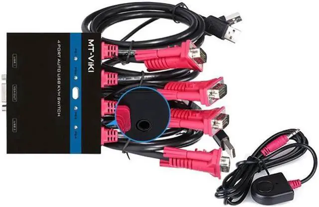 • 4 Port Auto Smart USB VGA KVM Switch with Wired Remote Extension Switcher Panel High Resolution PC Selector Hotkey 481KL