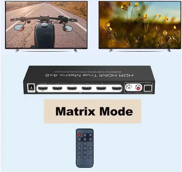 8K @60Hz HDR UHD HDMI 2.1 Matrix, HDR 4K 120Hz HDMI True Matrix 4x2 48Gbps ARC 8K 60Hz Splitter Switcher Switch 4 in 2 out HDMI2.1 Audio extractor