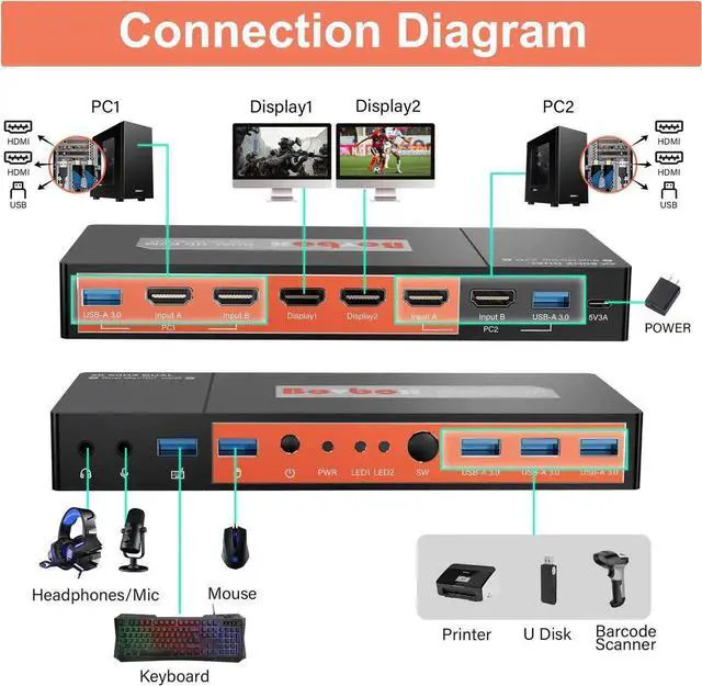 Model Number: 4x2 HDMI DUAL Monitor KVM SWITCHER