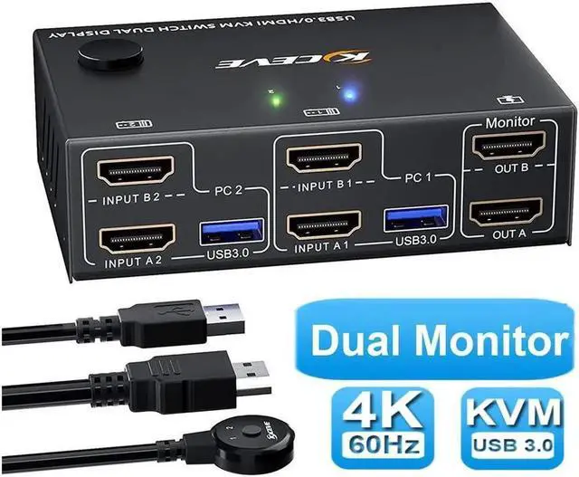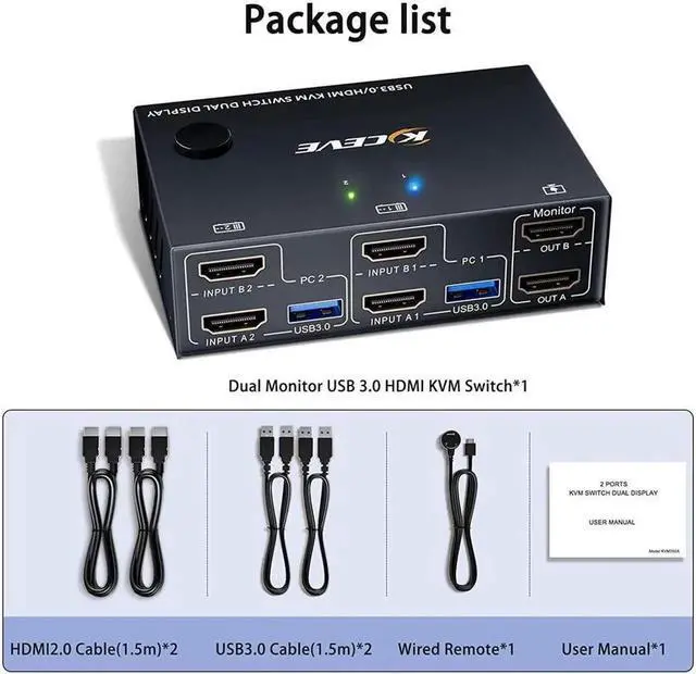 [Support up to 4K@60Hz] USB 3.0 dual monitor KVM switch supports resolution up to 4K@60Hz, 2K@120Hz.