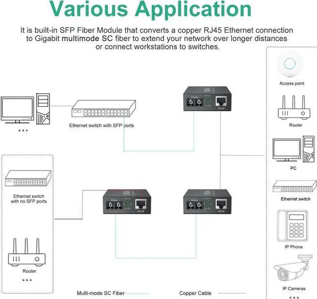 ipolex Gigabit Ethernet Media Converter, Built-in Multi-Mode SC SFP Fiber Module, 1310nm, MMF, Duplex, up to 2-KM, Dual SC Fiber to 10/100/1000Base-TX (UTP/STP/Cat5e/Cat6 RJ45)