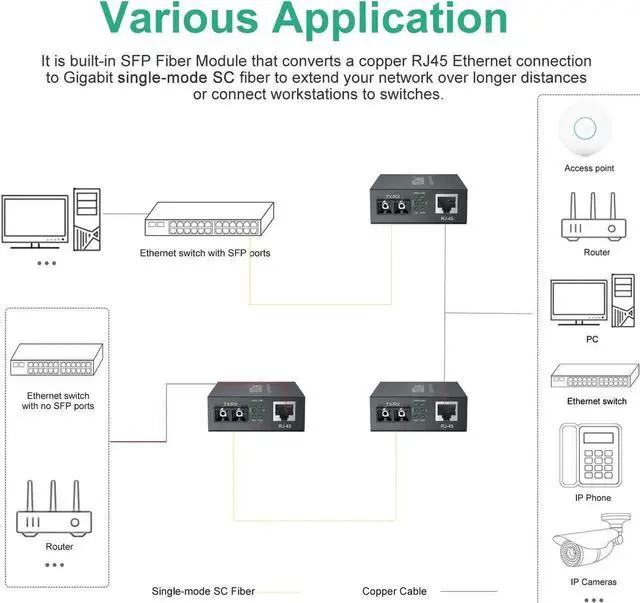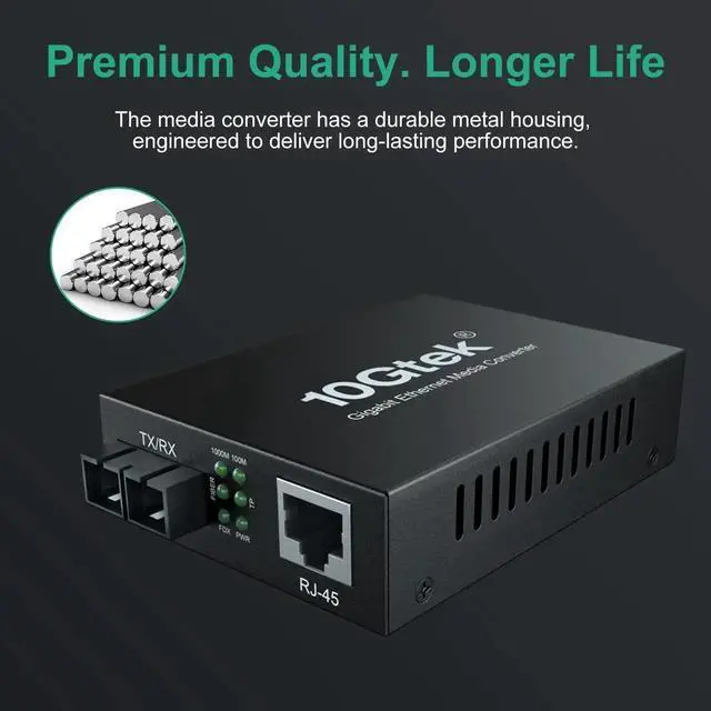 Ipolex Gigabit Singlemode Fiber to Ethernet Media Converter, Dual SC Fiber, Built-in SFP LX Module, 1310nm, SMF, up to 20-KM, 1000Base-LX to 10/100/1000Base-TX (UTP/STP/Cat6 RJ45), UL Certified, 2Pack