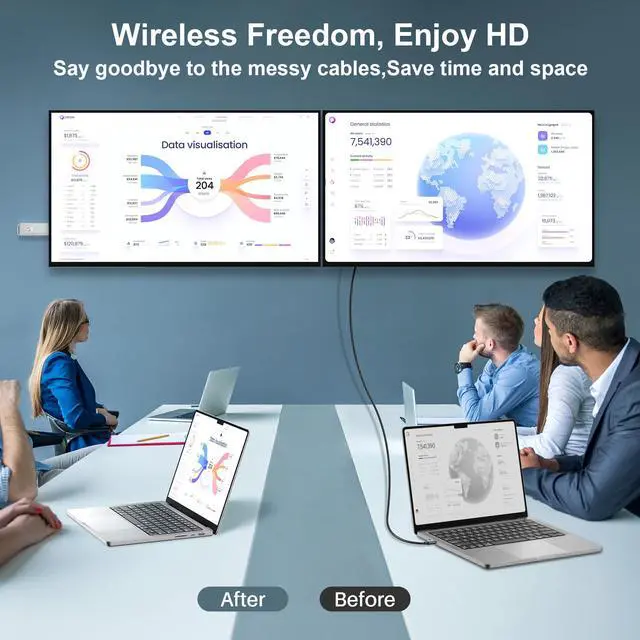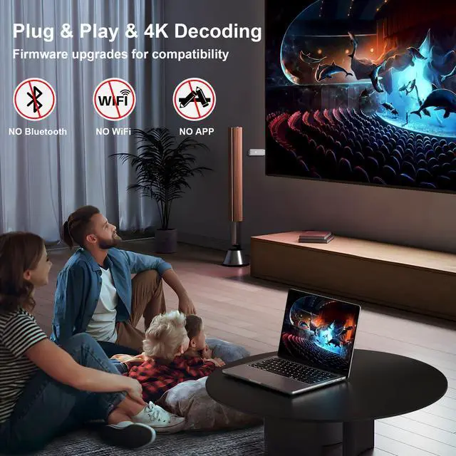 • Usage: Ideal for streaming video and audio content from portable devices to a larger display without needing a separate transmitter unit.