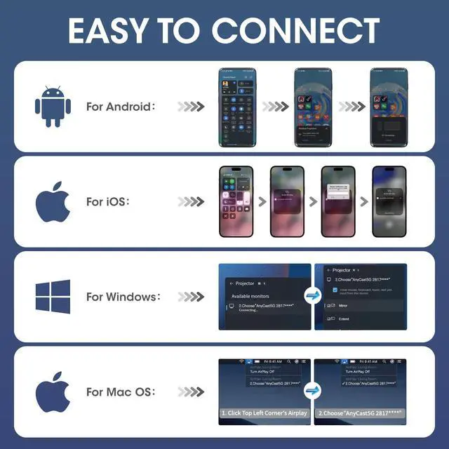 Wide Compatibility for Live Casting: Supports AirPlay, Miracast, and DLNA, working seamlessly with iPhone, iPad, MacBook, Android, and Windows devices. Easily cast live content to TVs, monitors, or projectors in studios, classrooms, offices, or demo environments