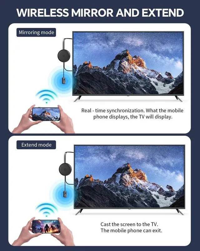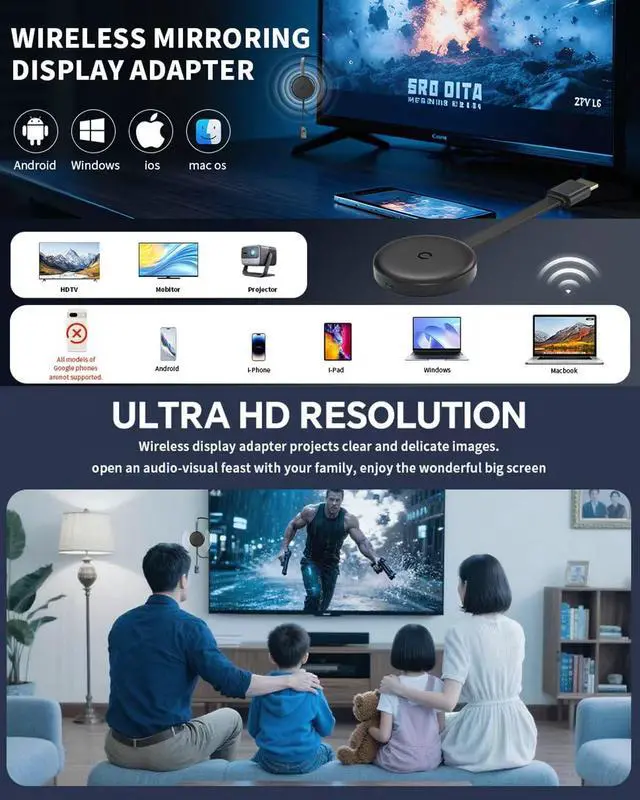 Broad Compatibility: iOS / Android / Windows / macOSWorks with a wide range of devices including iPhones, iPads, Android phones, tablets, Windows laptops, and MacBooks. Supports Miracast, AirPlay, and DLNA for maximum compatibility with smart TVs, monitors, and projectors.