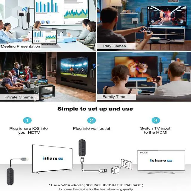 iShare iOS Wireless HDMI Display Adapter for iPhone, Streaming Mirroring Device for iPhone to TV/Monitor/Projector, HD Video & Audio Sync, iOS Screen Mirroring Adapter (Not Support Netflix)
