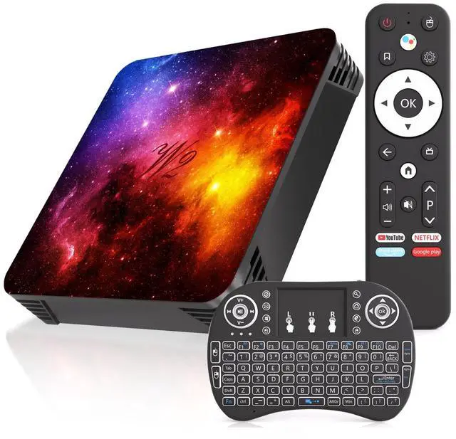 • Accessories IncludedThis Android TV Box comes with all accessories such as: Android TV Box, Power Adapter, Remote Control, HDMI Cable, Mini Keyboard,Instructions. Users only need to prepare AAA batteries and can start enjoying them in 3 minutes.
