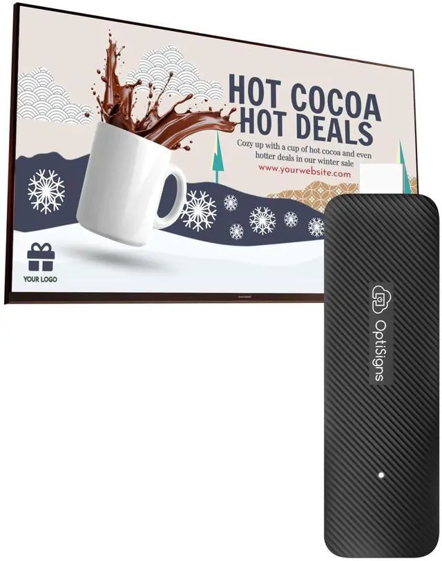 Look no further than OptiSigns! Our OptiStick Digital Signage Player is purposefully built for digital signage and can transform any screen into a digital sign. Ideal for running promotions in retail environments, showcasing menus in restaurants, or facilitating internal communication within your organization, the OptiSigns Digital Signage Player keeps your content fresh, relevant, and impactful.