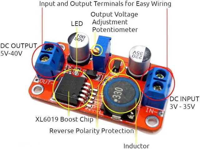 Boost voltage to a stable regulated output. Useful for a wide range of applications, such as powering 5V USB devices from a 3.7V lithium cell, powering higher powered electronics from a 12V battery, and a wide range of automotive and electronic projects Constant voltage regulation, suitable for LED strips and modules, but not for raw LEDs