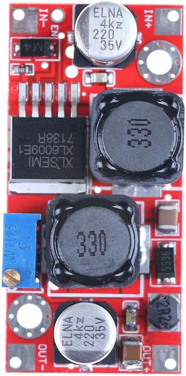 The XLSEMI XL6009 regulator IC has an integrated 4A MOSFET, over-temperature protection, and over-current protection