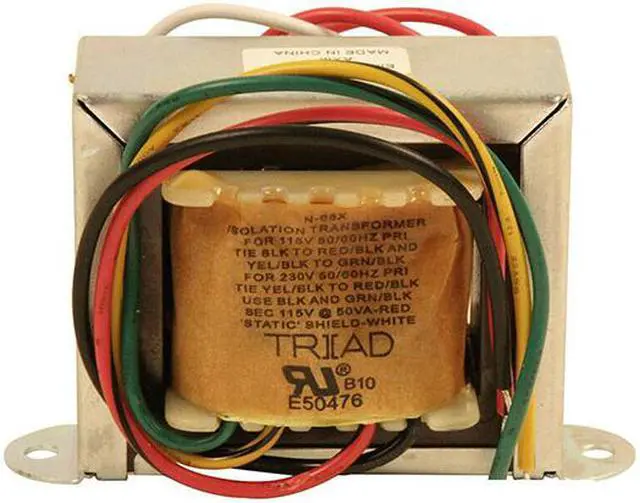The N68X is an Isolation Power Transformer for isolating equipment from direct connection to the power line. The transformer is constructed with non-concentrically wound coils. The primary and secondary are wound on separate arbors, then assembled on a laminate core side-by-side separated by insulation. This prevents electrical connection, under normal or overload conditions, between the primary and secondary windings. These hospital type units are offered with a resettable circuit breaker, providing protection from overload and short circuit. Triad isolation transformer is also offered in hospital type (designed with an MD suffix) which are designed and constructed to meet the low leakage current requirements for today's medical equipment.