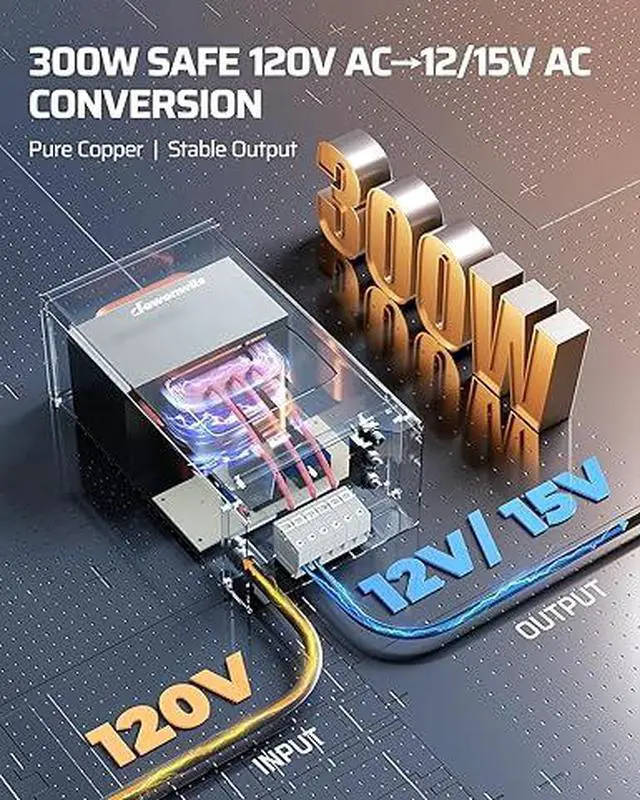 [Built-In 25A Circuit Protection] Features an integrated automatic circuit breaker, the 300W stainless steel transformer instantly cuts off power during overloads or short circuits; after troubleshooting, simply reset manually to restore normal operation and protect your lighting system