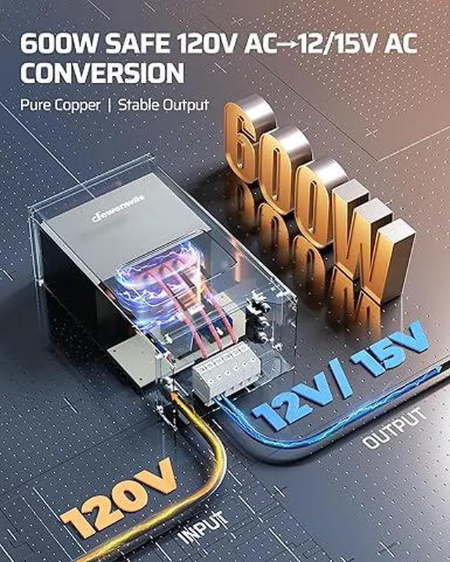 [Built-In 25A Circuit Protection] Features an integrated automatic circuit breaker, the outdoor low voltage transformers instantly cuts off power during overloads or short circuits; after troubleshooting, simply reset manually to restore normal operation and protect your lighting system