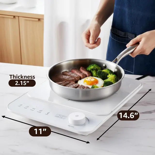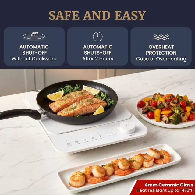 The Elite Gourmet EIND57W Digital Induction Cooktop brings precision, safety, and efficiency to your kitchen in a sleek, modern design. With 10 adjustable power levels ranging from 600 to 1500 watts and temperatures from 140°F to 465°F, you can simmer sauces, sear meats, or boil water with perfect control. The soft touch controls make it easy to adjust heat or set the 1-minute to 3-hour timer for hassle-free, hands-free cooking. Crafted with a durable, shatter-proof ceramic glass top, this induction cooktop is both stylish and built to lastresistant to heat and easy to clean after every use. Its slim design offers a low profile for stability, compact storage, and ease of use, while the energy-efficient technology transfers over 85% of its power directly to your cookware, ensuring fast, even heating without wasting electricity or creating hot spots. Whether in a home kitchen, dorm room, office, RV, or outdoor setup, the EIND57W Digital Induction Cooktop delivers consistent performance and reliability. Safety and convenience are at the heart of the Elite Gourmet design. The child safety lock, auto-pan detection, overheat protection, and automatic shut-off provide peace of mind while cooking. Backed by over 40 years of trusted quality, Elite Gourmet supports every product with a 1-year warranty and responsive, U.S.-based customer careready to help by phone, email, or chat whenever you need assistance.