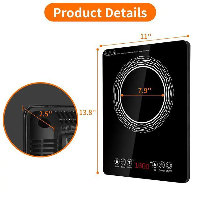 MULTIPLE SECURITY PROTECTION: Don't worry for the water on the plate. Induction burner will safely shut itself off after 1 minute of no use. In order to use the cooker more safely, we have set up timer, and overheat protection, voltage/current protection. Round edges with no sharp corners. Safe and user-friendly. Active Variable Cooling System ensures the electric induction burner cools down effectively and prevents overheating.