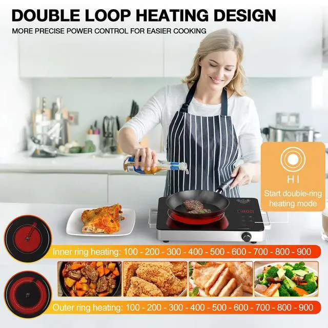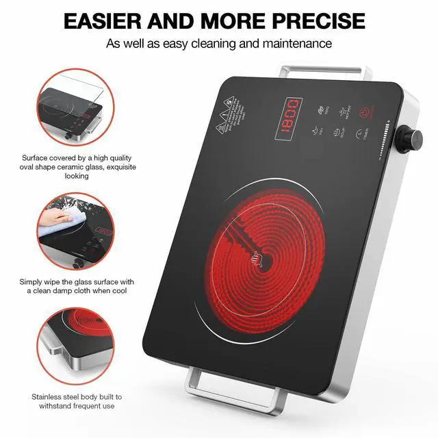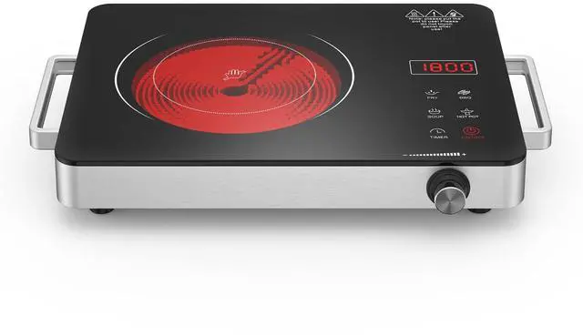 Electric Cooktop,Portable Electric Cooktop 1800W Single Burner Stove with Plug,Hot Plate Countertop,110V-120V Infrared Burner,Child Safety Lock,Timer,Touch and Knob Control