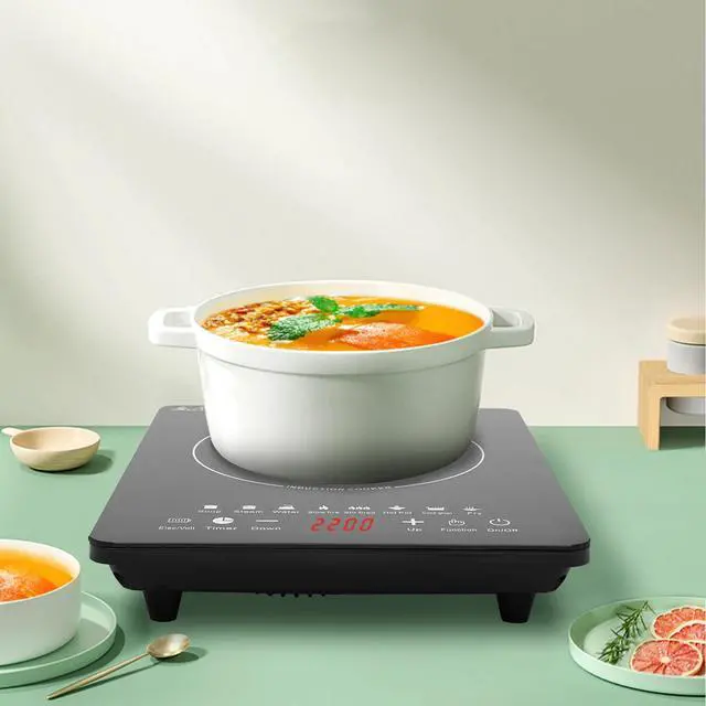 Safer Cooking: It comes with multiple safety protection functions(automatic shut-off, over-heat protection, over-low protection, anti-dry burning, anti-blockage, anti-leakage, and safety cut-out), magnetic induction mode without generating open flames, waterproof and leakproof panel, strong cooling fan and heat dissipation hole can effectively protect safety during operation, so you can use it with confidence.