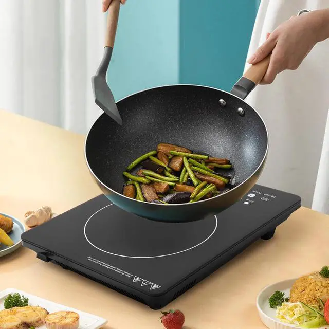 High Efficiency: The densely wound coils, stronger magnetic high conductivity electromagnetic strips, and a maximum power of 750W can improve cooking efficiency, lock in food nutrition, and make your food evenly heated to avoid burning and other situations.