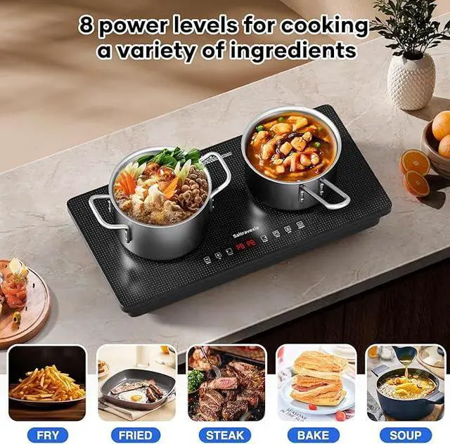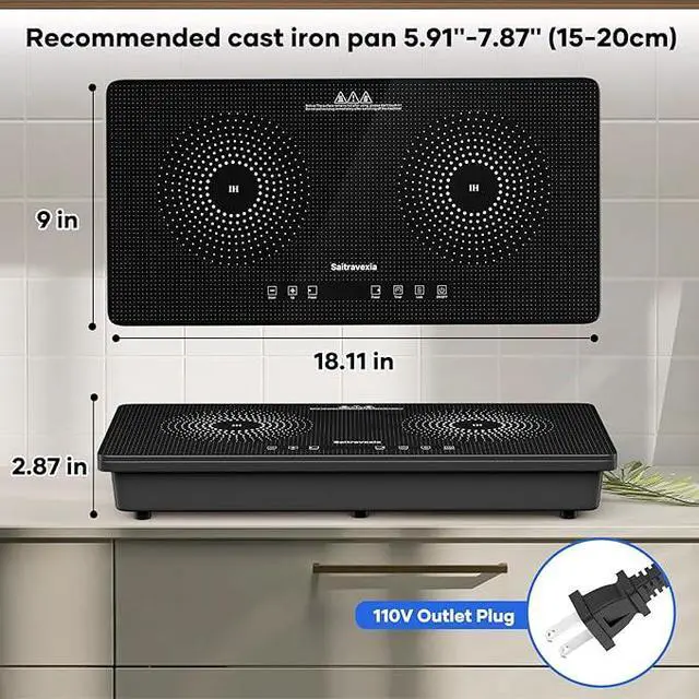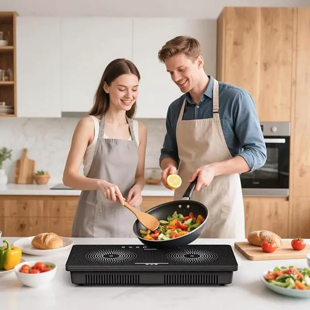 18 Inch Double Induction Cooktop Cook Two Dishes at the Same Time This 18 inch double induction cooktop features two independent heating zones, allowing you to cook multiple dishes simultaneously. Ideal for everyday cooking, small kitchens, apartments, RVs, and secondary cooking spaces.